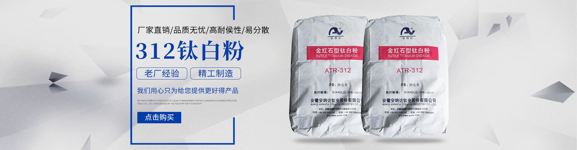 常州安鈦化工有限公司經(jīng)銷批發(fā)的鈦白粉、沉淀硫酸鋇、立德粉、滑石粉、高嶺土、炭黑、云母粉、彩色顏料、氫氧化鈣、硅微粉、氧化鐵紅、氧化鐵黑、金紅石型鈦白粉、銳鈦型鈦白粉、進口鈦白粉暢銷消費者市場,在消費者當中享有較高的地位,公司與多家零售商和代理商建立了長期穩(wěn)定的合作關系。常州安鈦化工有限公司經(jīng)銷的鈦白粉、沉淀硫酸鋇、立德粉、滑石粉、高嶺土、炭黑、云母粉、彩色顏料、氫氧化鈣、硅微粉、氧化鐵紅、氧化鐵黑、金紅石型鈦白粉、銳鈦型鈦白粉、進口鈦白粉品種齊全、價格合理。常州安鈦化工有限公司實力雄厚,重信用、守合同、保證產品質量,以多品種經(jīng)營特色和薄利多銷的原則,贏得了廣大客戶的信任。
